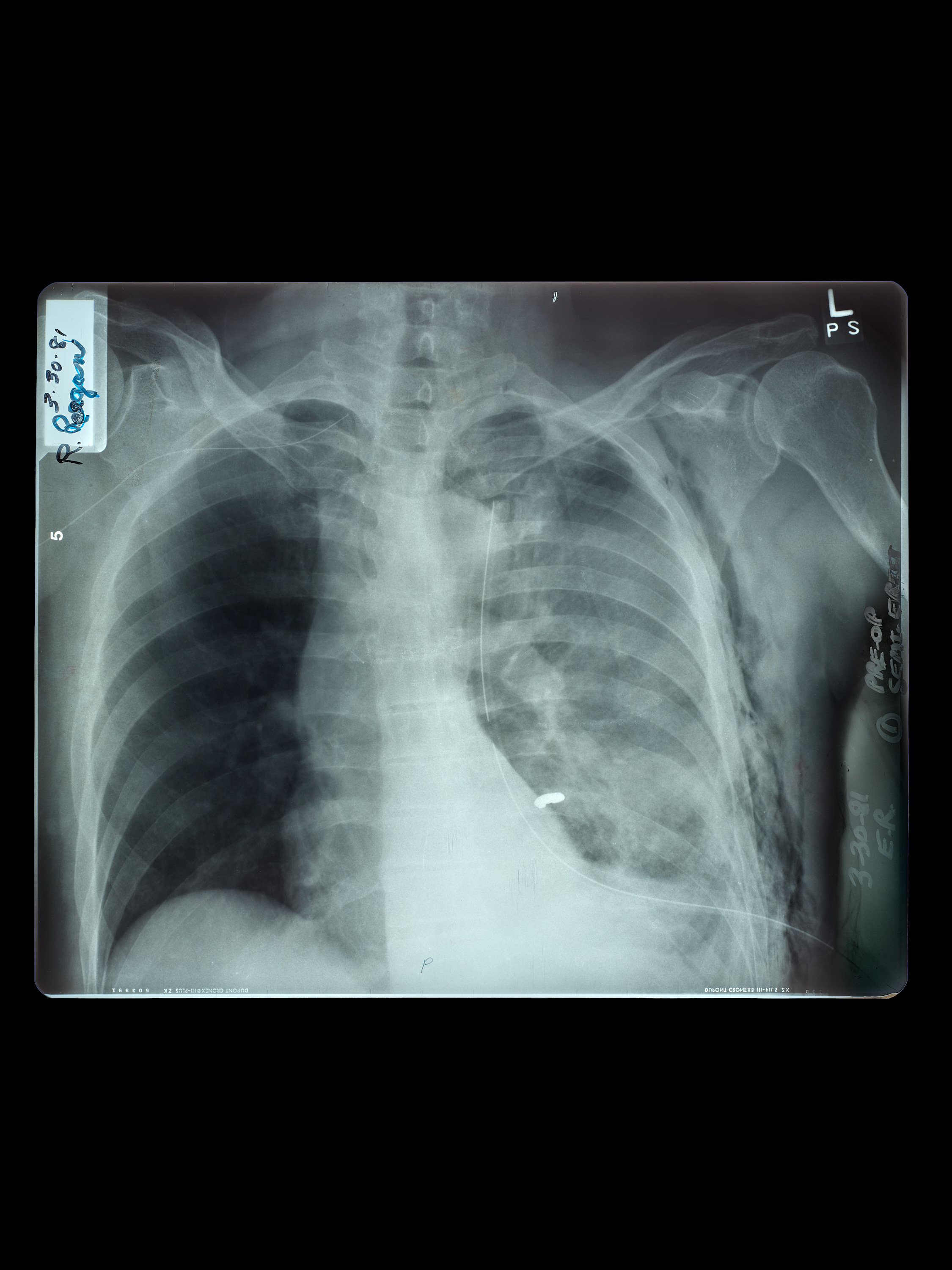 At first, no one realized the President had been shot. It wasn’t until Parr noticed bright, frothy blood on Reagan’s lips—a classic sign of a lung injury—that they headed directly for the hospital. While Reagan and Parr were initially unaware, the bullet from Hinckley’s sixth and final shot had ricocheted off the limousine and struck Reagan under his left arm, where it punctured his lung and stopped less than an inch from his heart. As he was rushed into the operating room, the President attempted to defuse the gravity of the situation with humor, saying to the doctors, “Please tell me you’re all Republicans.”