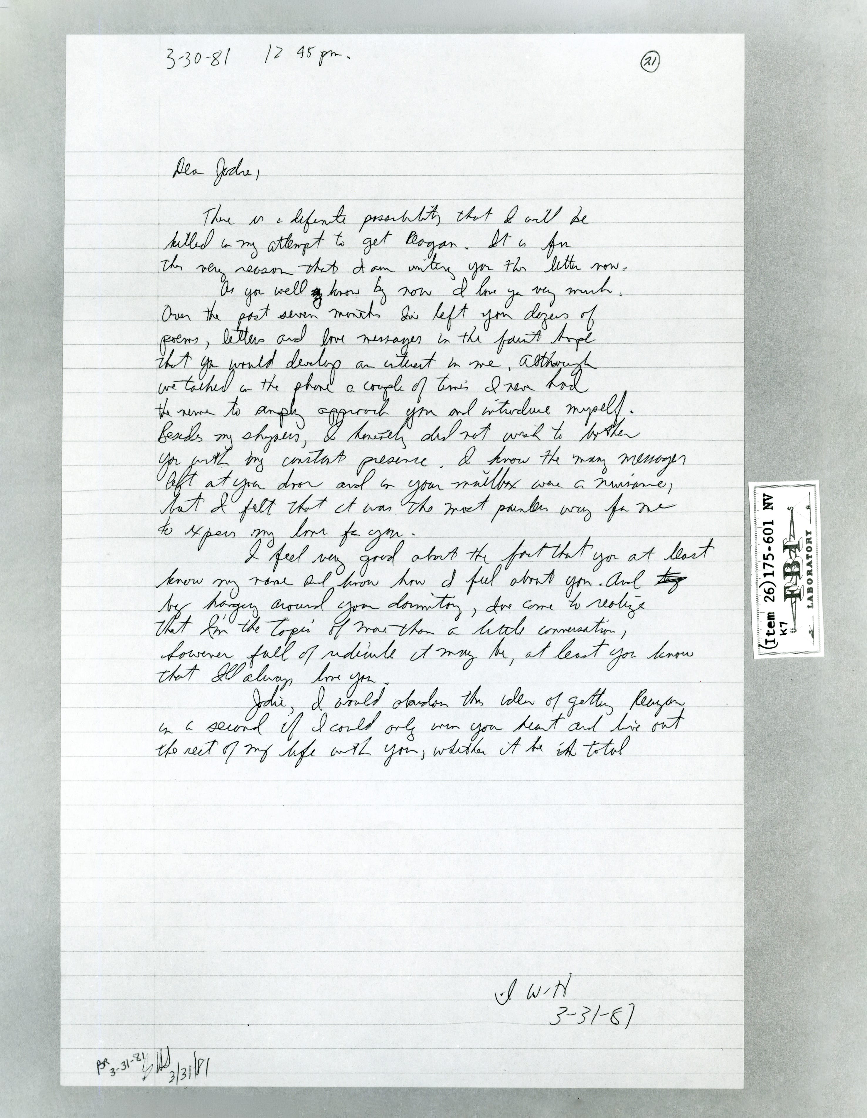 After firing his sixth shot, Hinckley was quickly subdued by agents and arrested. Less than two hours later, the FBI raided his room at the Park Central Hotel. It was there, among his possessions, that they discovered Hinckley’s motive was not political but instead stemmed from a personal obsession with the actress Jodie Foster. Evidence indicated that he had no animosity toward Reagan, who was simply a “stand-in” for a twisted romantic gesture—a theory was later supported by the discovery that Hinckley had also stalked President Carter months earlier.